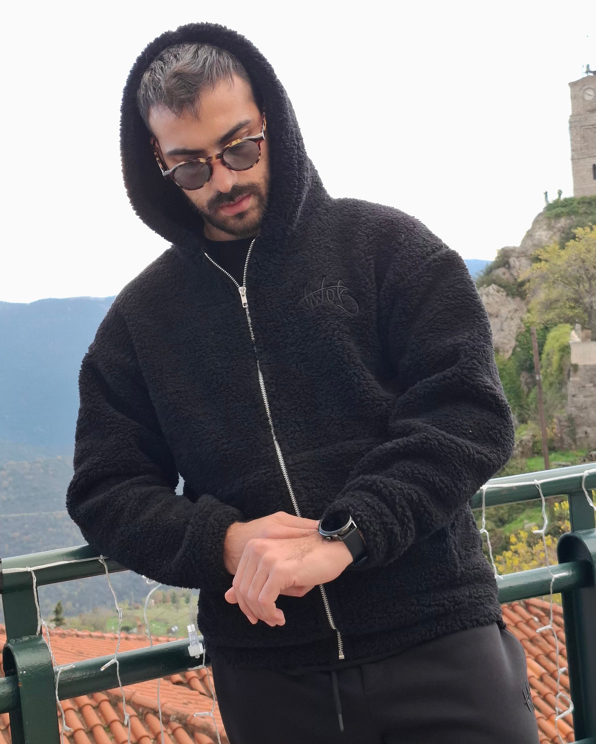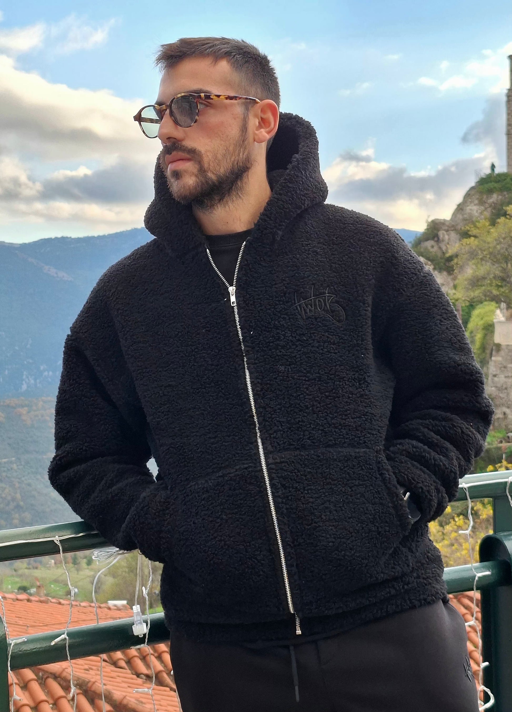 Ζακέτα Oversize Γουνάκι Two Brothers - Μαύρο