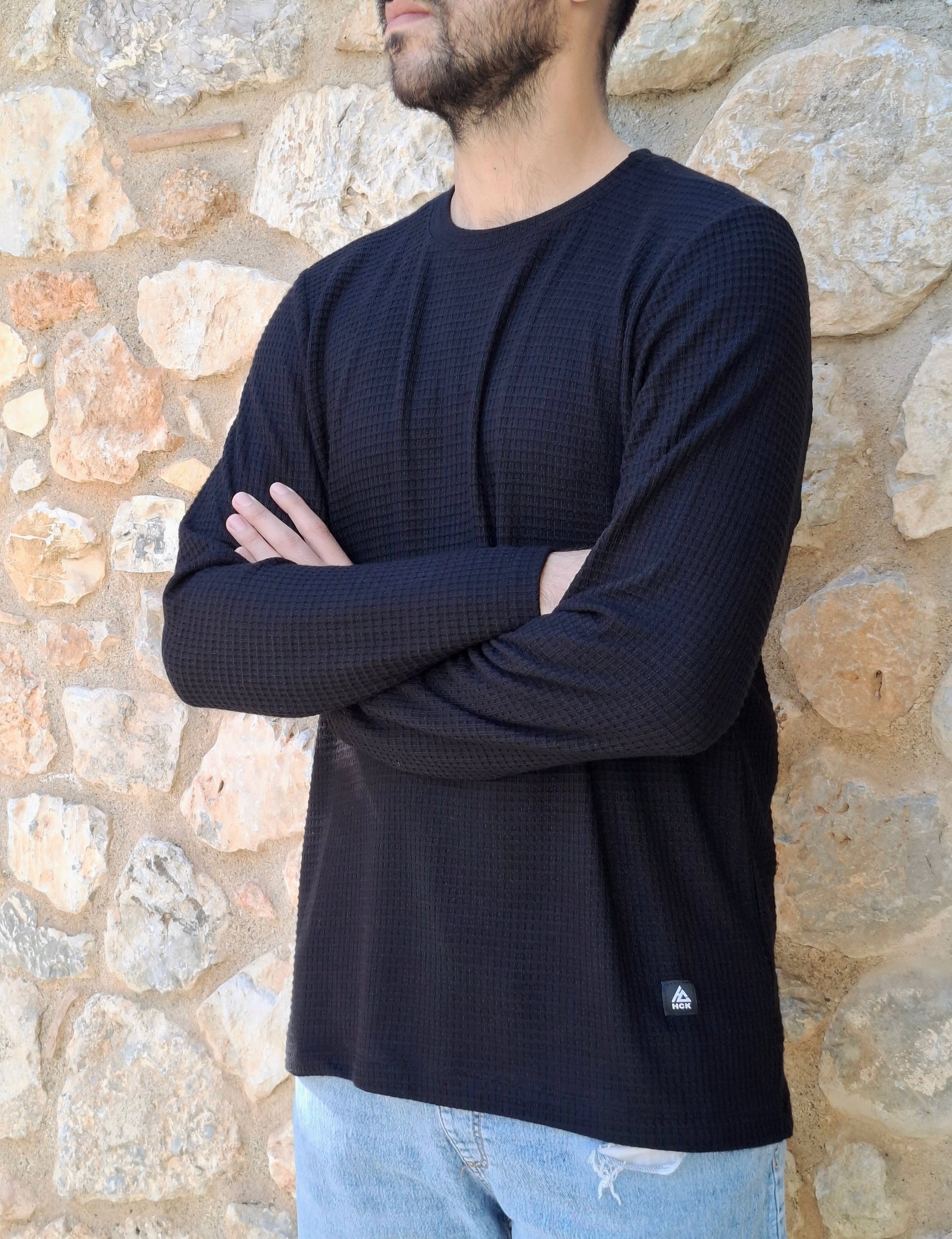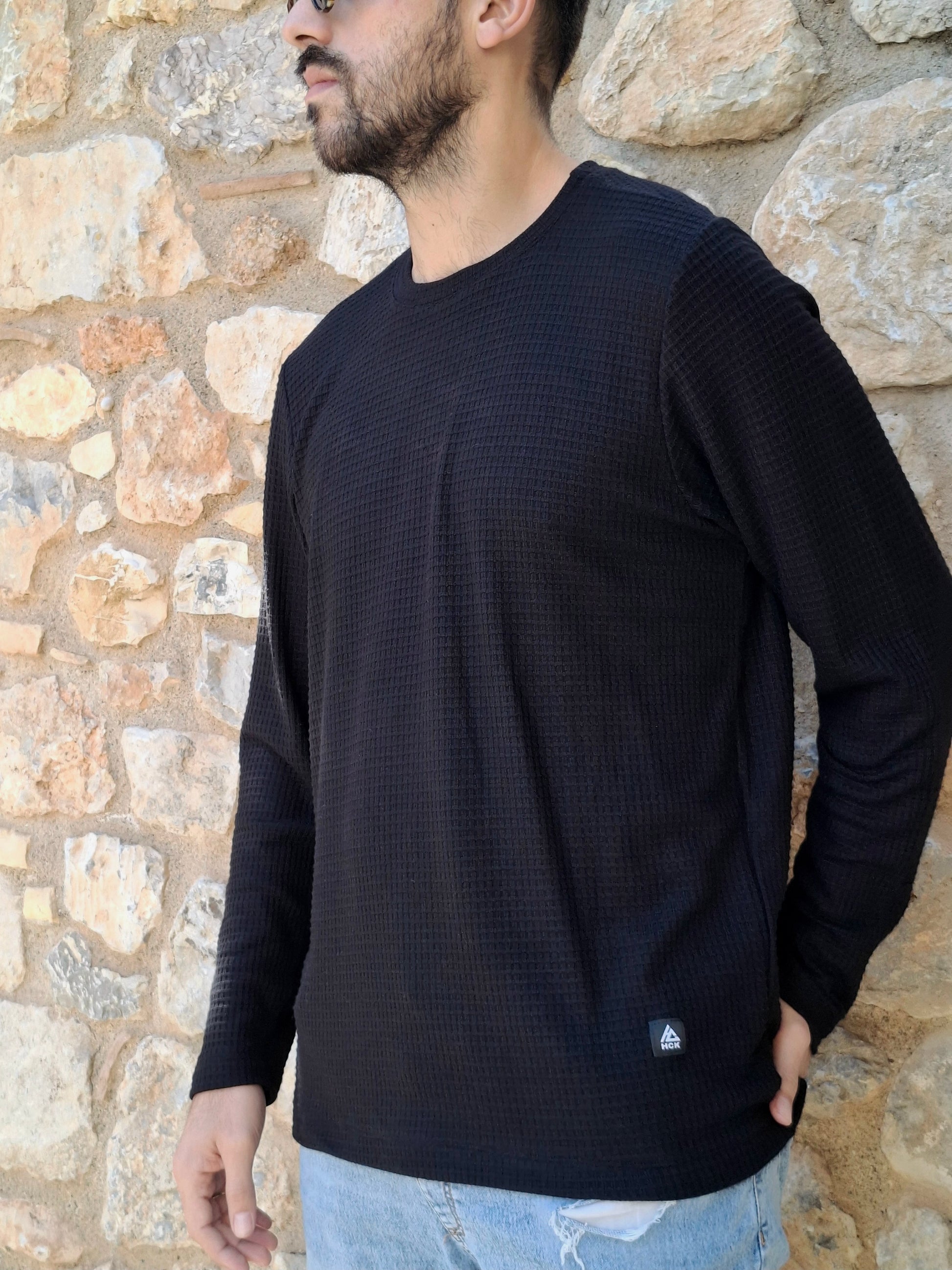 Ανακάλυψε τη νέα μπλούζα βάφλα με μακρύ μανίκι, ιδανική για τις δροσερές μέρες και τις casual εμφανίσεις σου. Κατασκευασμένη από ποιότητα υφάσματος με υφή βάφλας, προσφέρει μοναδική άνεση, διαπνοή και ελαστικότητα, ώστε να κινείσαι ελεύθερα όλη μέρα.
