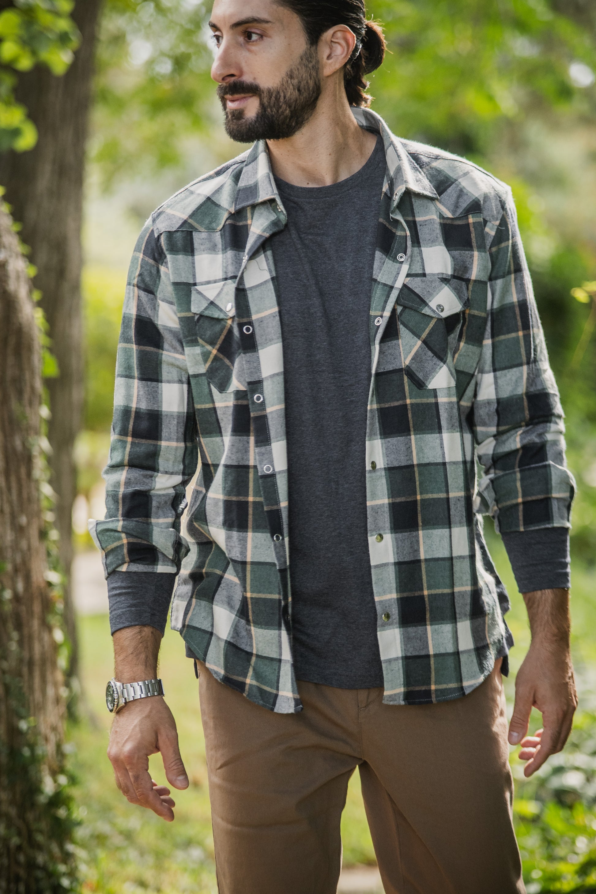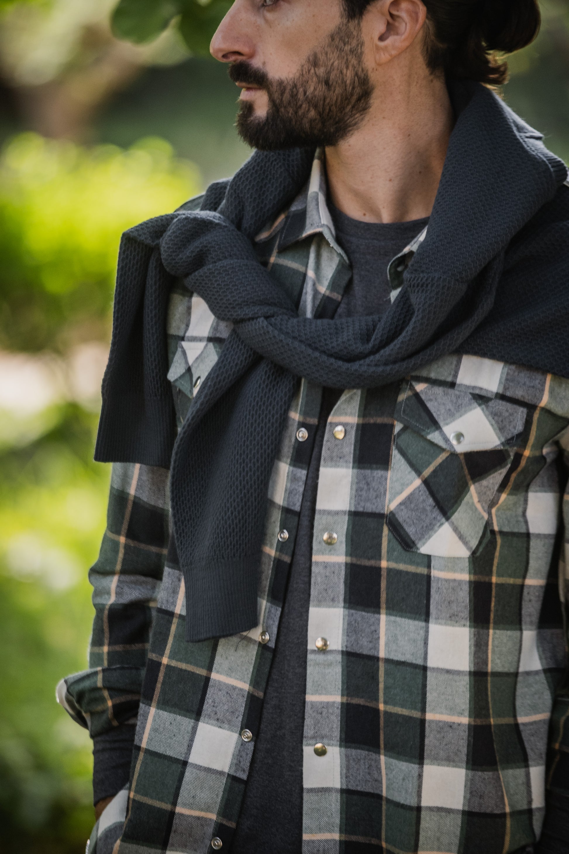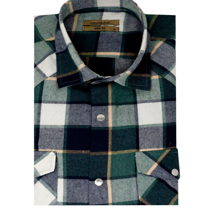 Πουκάμισο Φανέλα Καρό Dash&Dot - Λαδί